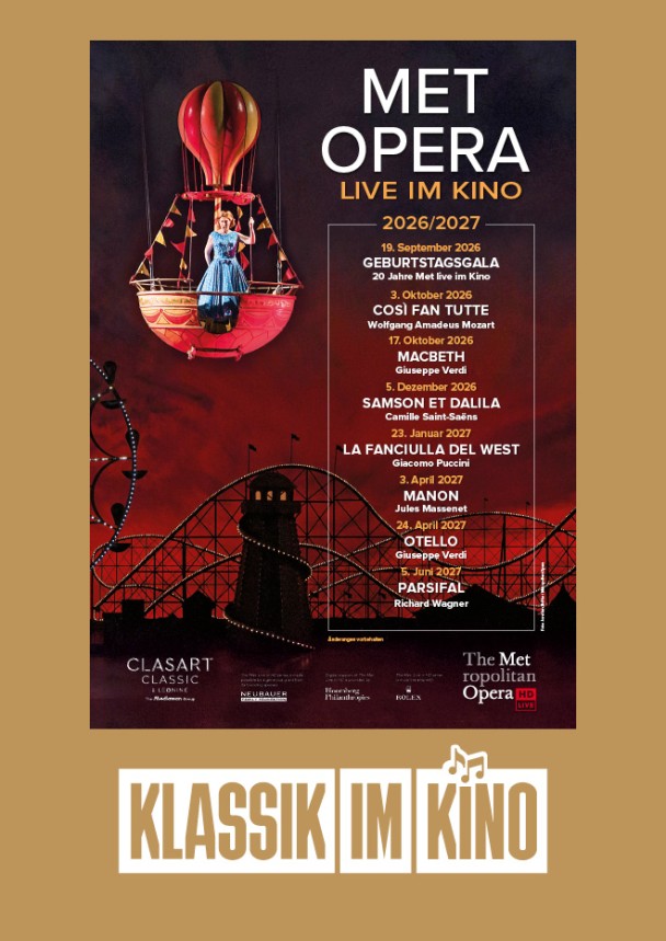 Die MET Saison 2026/2027 bringt acht Opern-Highlights live aus New York ins Kino – in brillanter HD-Qualität. Große Stimmen, spektakuläre Inszenierungen und unvergessliche Momente inklusive.