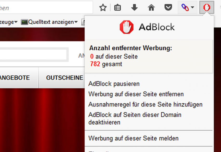 Deaktivieren des AdBlocker im Firefox Browser