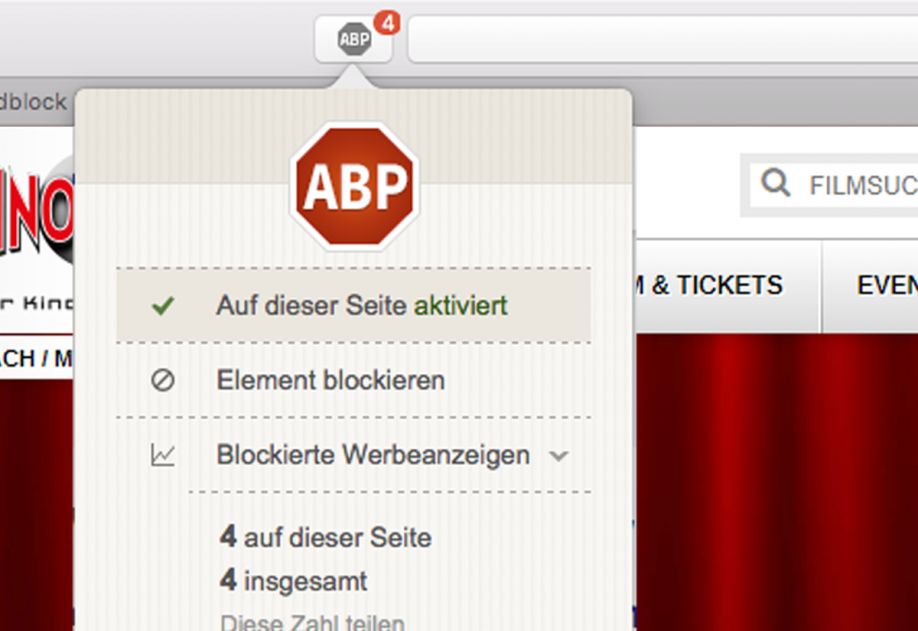 Deaktivieren des AdBlockers im Safari Browser