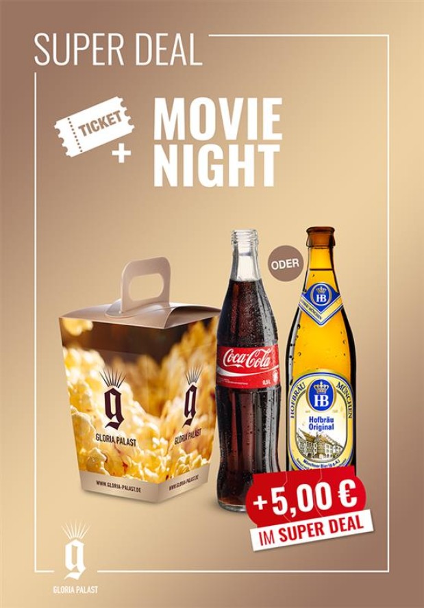Best of Cinema-Ticket für Deinen Kinobesuch im Gloria Palast + einen Snackgutschein für eine Portion unseres homemade Popcorns.